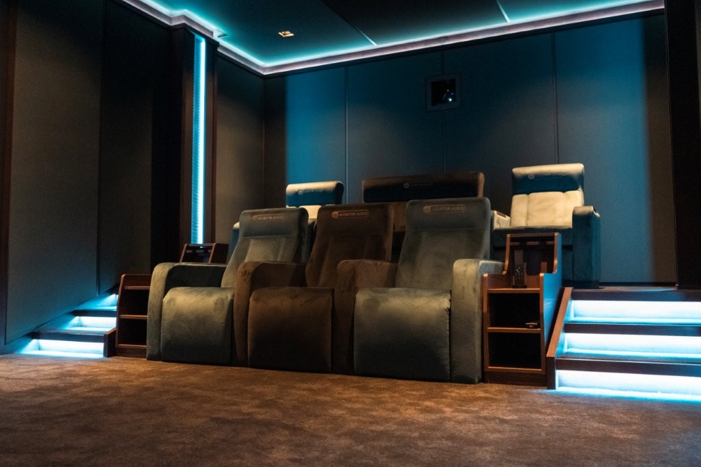 The Cinema Room was meticulously designed to function at reference performance levels, offering the flexibility to showcase a variety of system scales and budgets. Among its standout features are Monitor Audio Cinergy Series loudspeakers, strategically positioned for the front, surround, and rear channels. The room also boasts sixteen 15-inch subwoofers, arranged in a mirrored front-and-rear layout, with advanced WaveForming optimisation developed in partnership with Trinnov. This configuration enables multiple operational modes, allowing demonstrations using 2, 4, 8, or 16 subwoofers to suit different requirements.