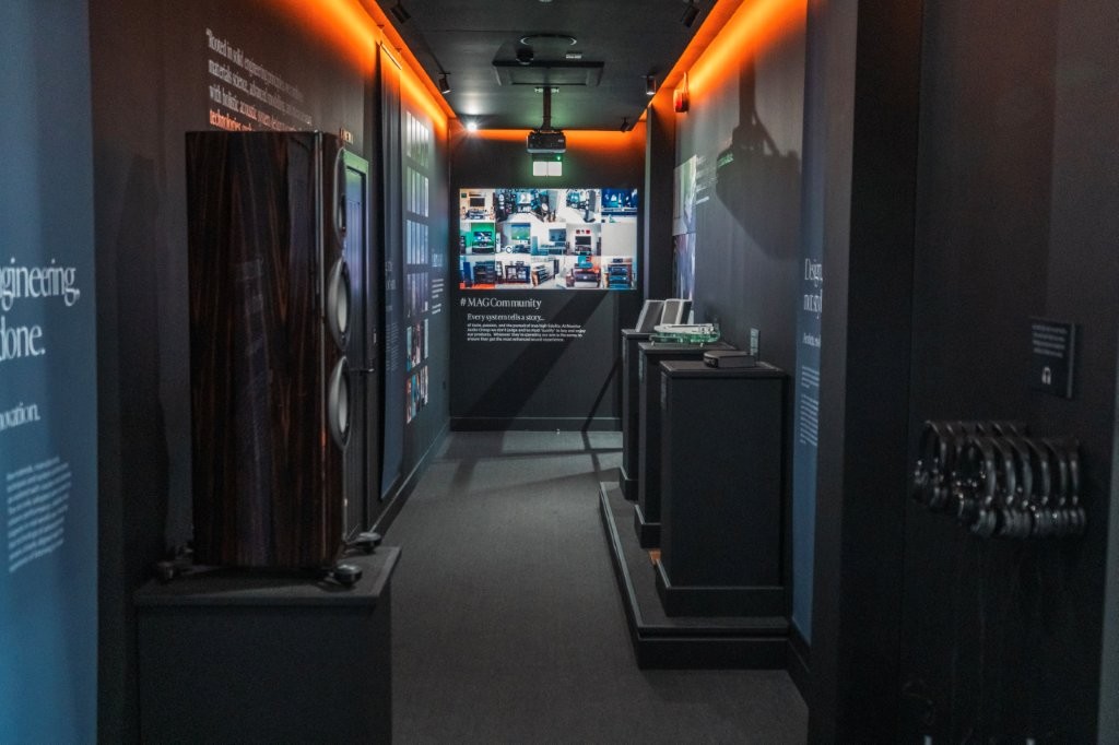 The Experience Centre offers much more than the two principal rooms, with it incorporating a range of additional spaces designed to enhance the visitor journey. Among these is a Brand Immersion Gallery that guides visitors through Monitor Audio’s heritage and evolution, while dedicated training and presentation areas support education and professional development.