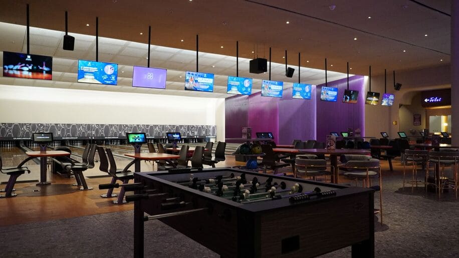 The zoned configuration enables staff to adjust output levels independently between the bowling lanes and billiards tables, maintaining clarity without overwhelming conversation or gameplay. Loudspeaker placement and calibration were tailored to preserve intelligibility while supporting background music and event playback.