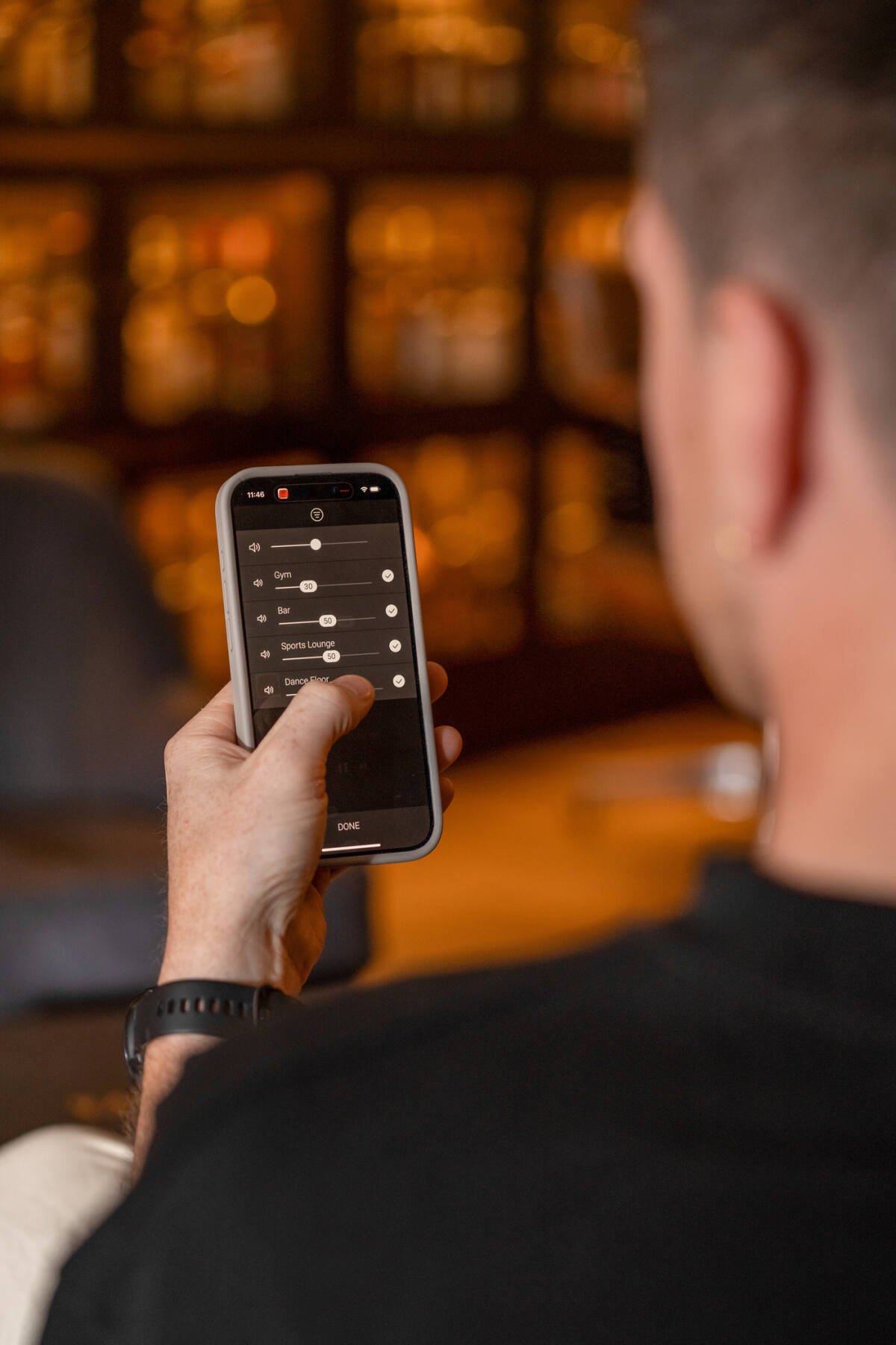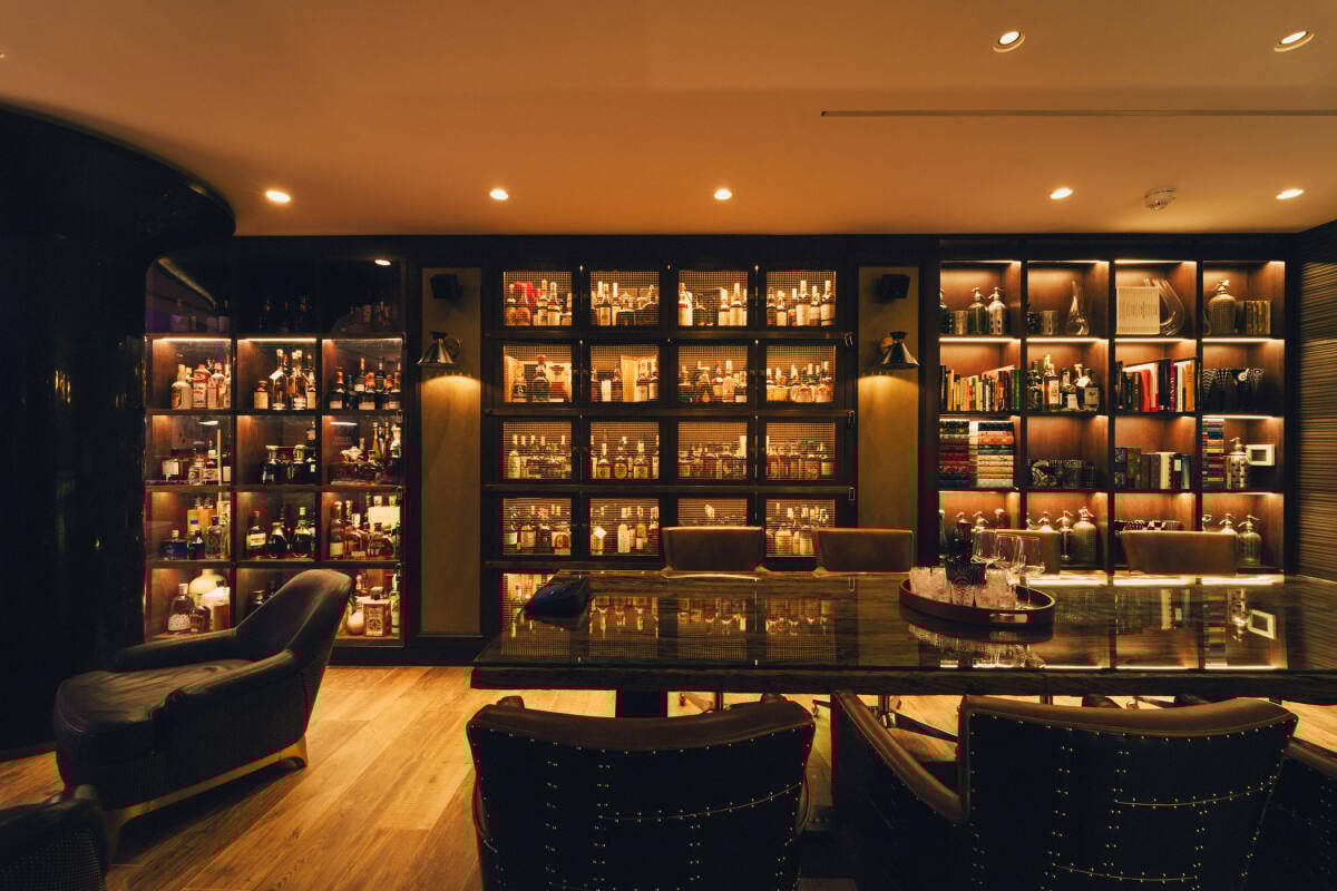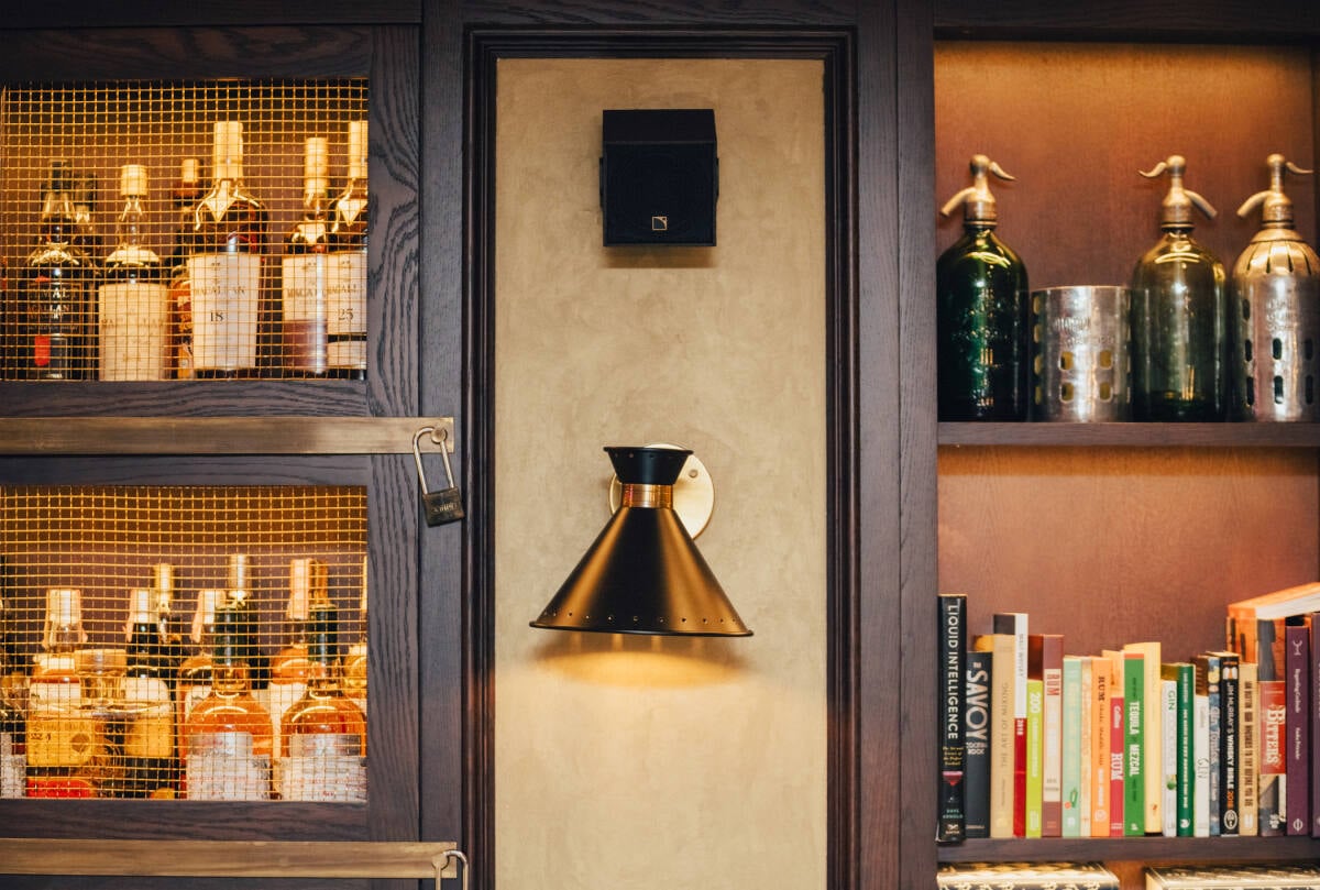 The basement presented significant design challenges. As a retrofit project, Lighthouse had to work within the constraints of existing cabling and architectural features. The space includes extensive reflective surfaces, particularly in the bar area, where hundreds of bottles created potential for unwanted reverberation and resonance. The team also had to ensure the different zones wouldn’t clash acoustically while maintaining sonic cohesion across the entire basement.