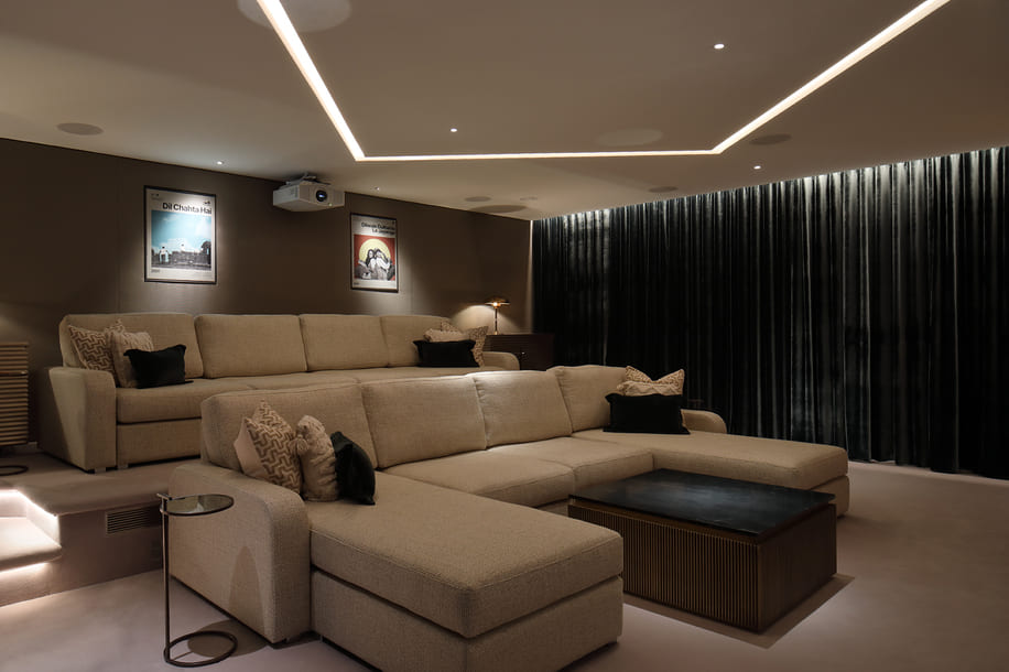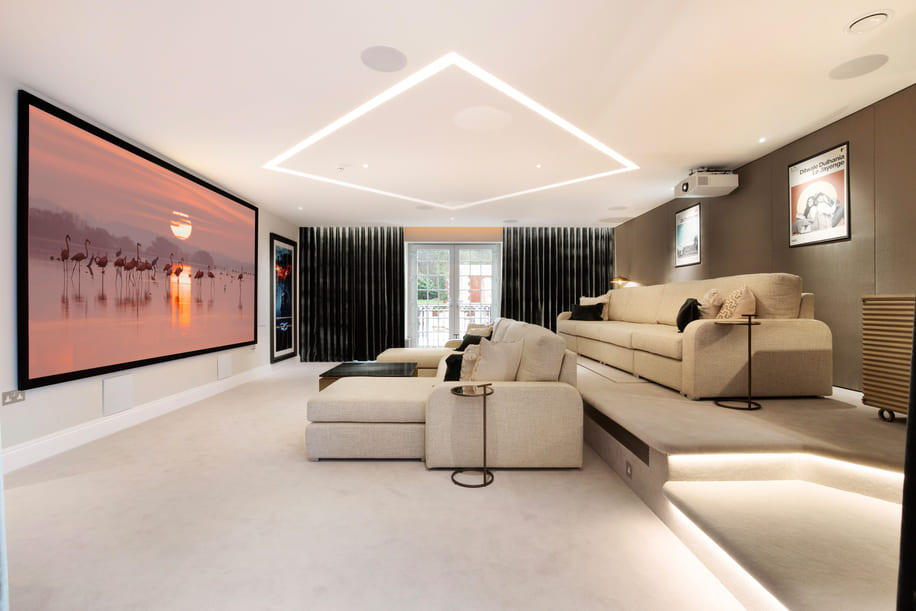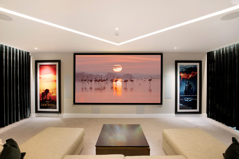 At the core of the home is a luxurious cinema room, a dedicated space where the family gathers for their favourite films which features a state-of-the-art 135-inch Adeo Screens FramePro screen. This entertainment hub flows naturally into a pool room and spa area, linked by an ingenious folding wall that transforms the space from a tranquil retreat to a vibrant leisure zone. The result is a versatile, family-focused environment that delivers an instant ‘wow factor’ every time it’s revealed.