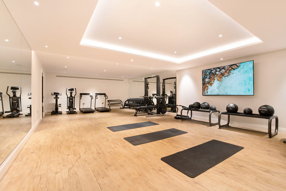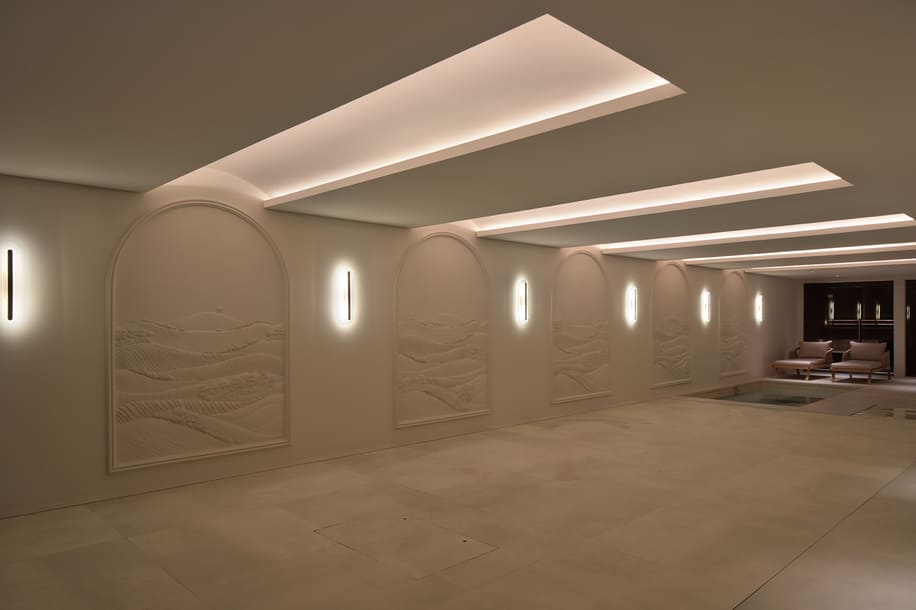 Every detail has been carefully considered. Adaptable acoustics in the pool room maintain sound quality whether the wall is open or closed, while the adjoining gym and spa facilities bring wellness and technology together in perfect harmony.