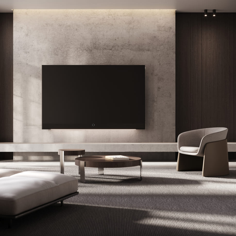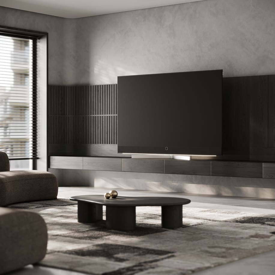 Loewe says the new additions bring a grand cinematic presence to luxury interiors. Each model features an aluminium frame anodised in deep black for a contemporary finish while the back panel is crafted from matte black concrete. The company says this blend of natural materials and innovative design creates a durable and visually striking centrepiece for premium living spaces.