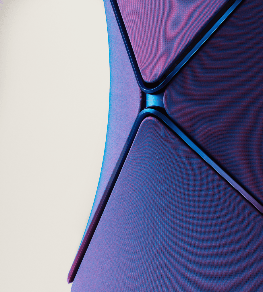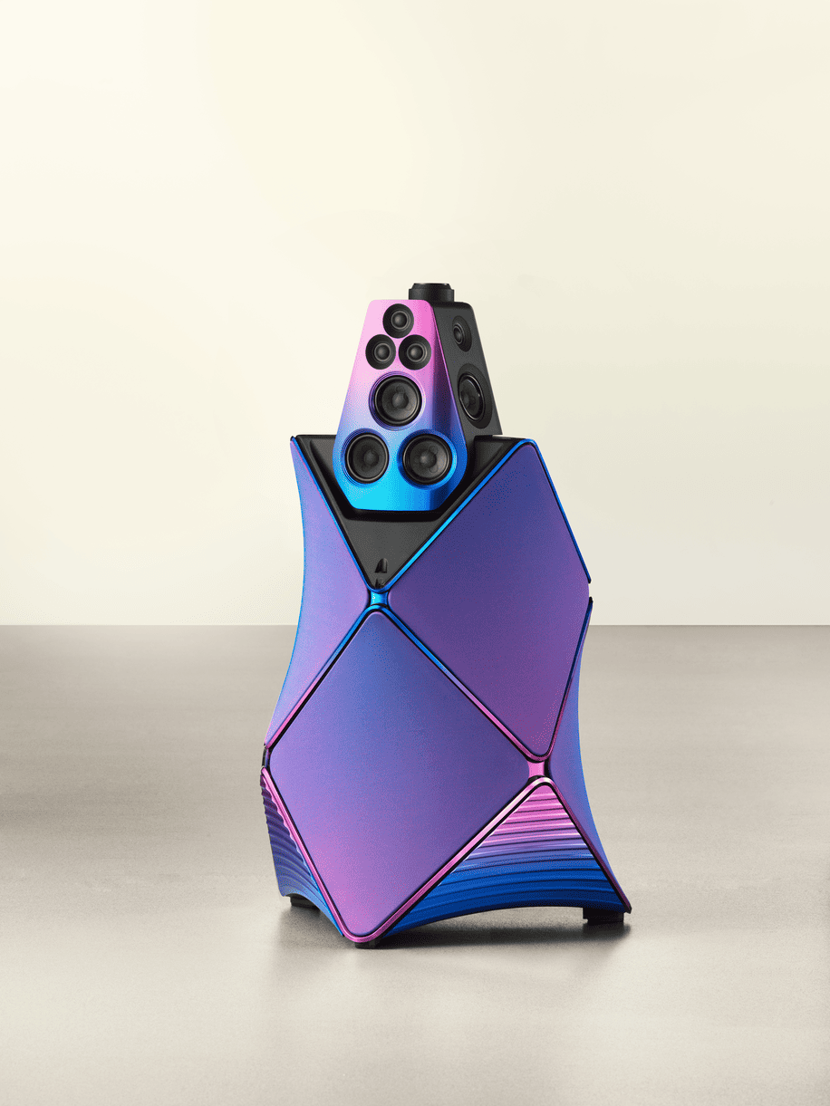 In stark contrast to the Phantom Edition, the Beolab 90 Mirage Edition is a celebration of colour, sporting an iridescent fabric between sapphire and magenta hues – designed to echo the fluidity of sound waves and the dynamism of light.
