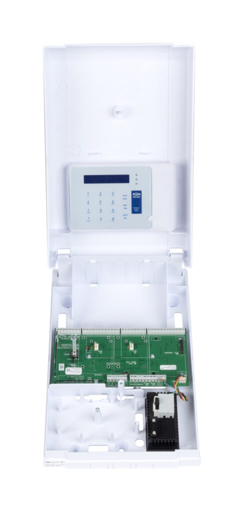 When a user presses a HKC emergency button or keyfob, the signal is transmitted via the HKC RF-RBX module to the intruder panel. From there, the system forwards a lockdown command to SMARTair’s Communication Hubs, which relay it immediately to all associated wireless locks.