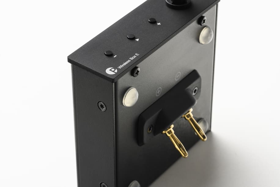 Typical applications include integration with Pro-Ject and compatible speakers. Optimised for Pro-Ject’s own speaker range, the Wireless Box E attaches directly for a clean setup. It also supports third-party passive loudspeakers with similar terminal layouts and rear-panel recesses, while the optional extension cable enables installation where a direct connection is not possible.