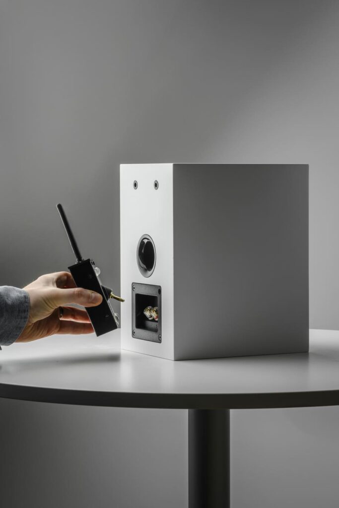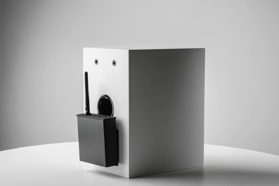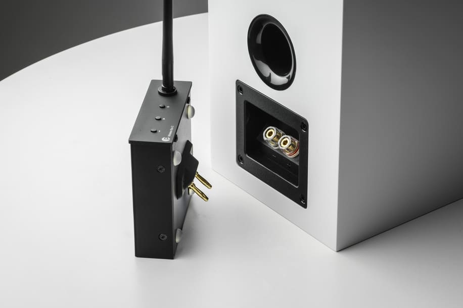 The concept is designed to simplify system layout and reduce visible cabling while maintaining a full hi-fi signal path. In use, each Wireless Box E is fitted to a single speaker, meaning a stereo pair requires two units. Each unit also requires a mains power connection.