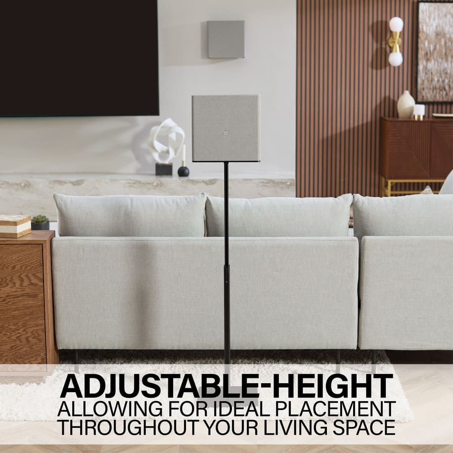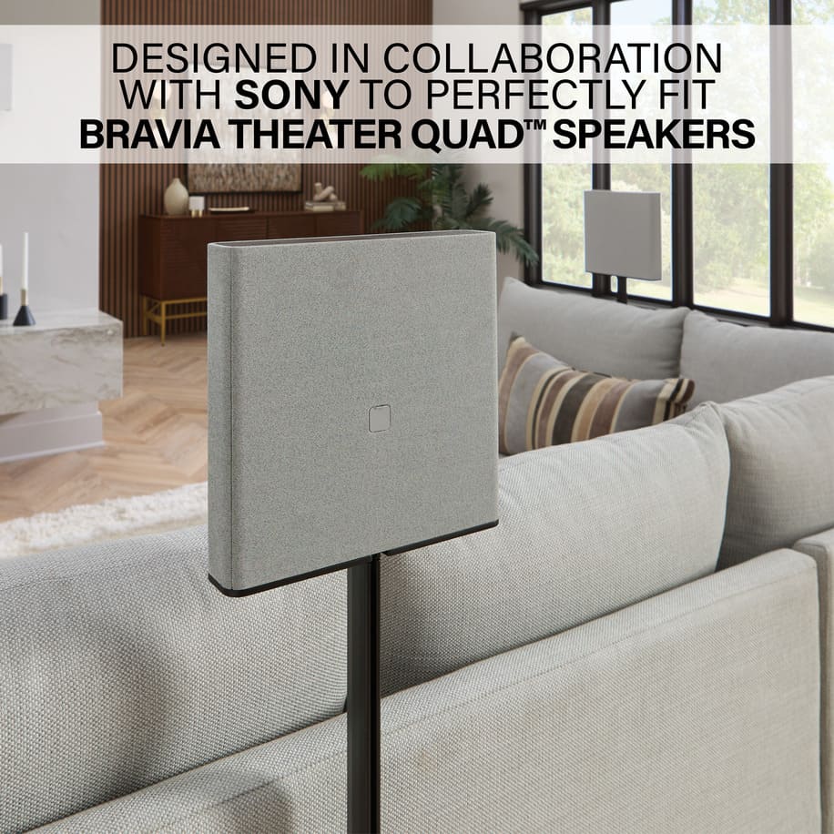 The Sony BRAVIA Theatre Quad speakers are a clever design that creates a Dolby Atmos immersive sound field from just four speakers positioned around the room. Mounting them at the perfect position and height is now a simple task using the dedicated Sanus WSSBTQA-B2 speaker stands.
