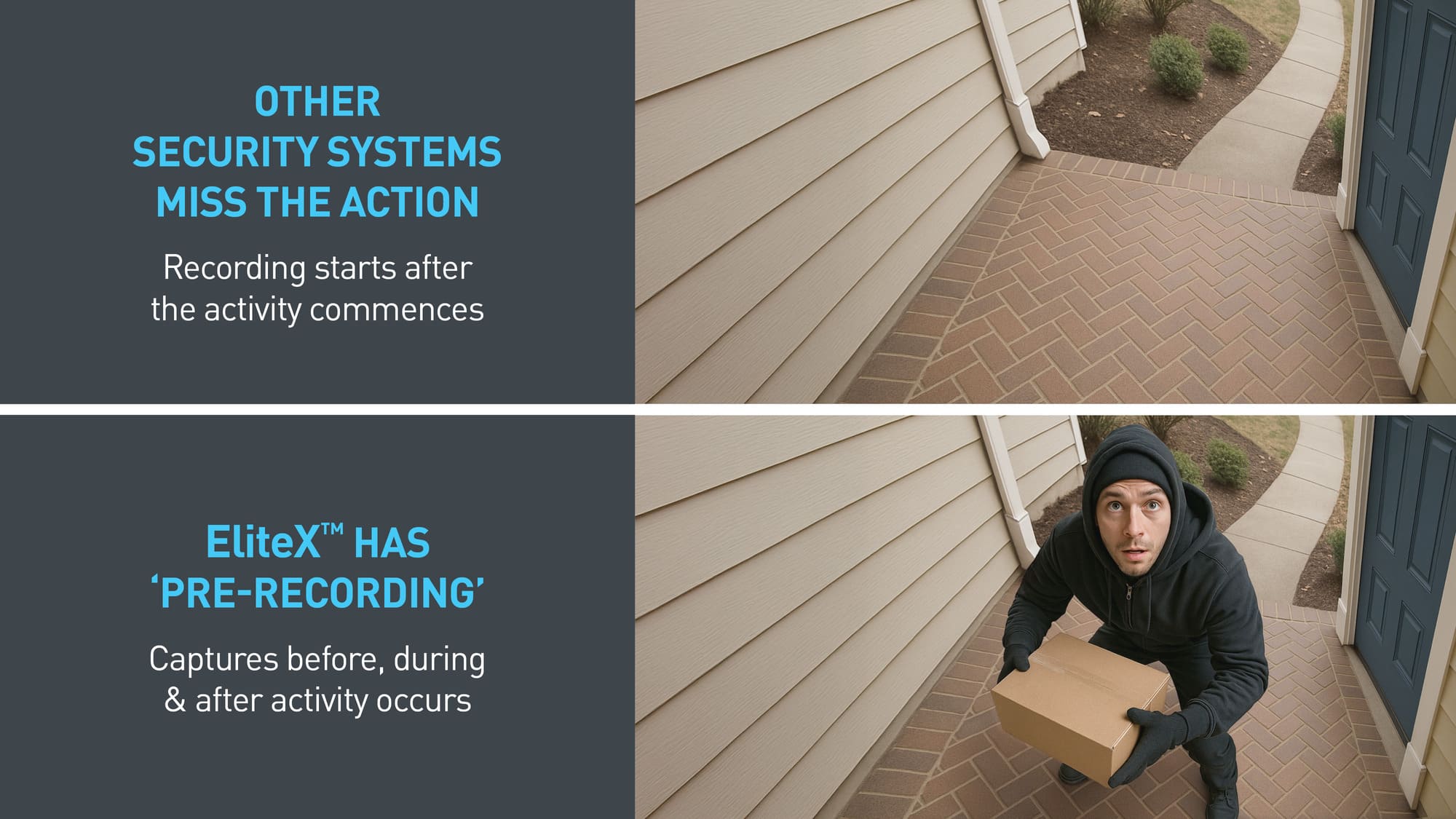 Designed with weatherproof IP66-rated cameras and a two-way audio service, the EliteX system has been designed to ensure comprehensive, professional-grade coverage for any property in any environment – all with free local storage and no ongoing fees.