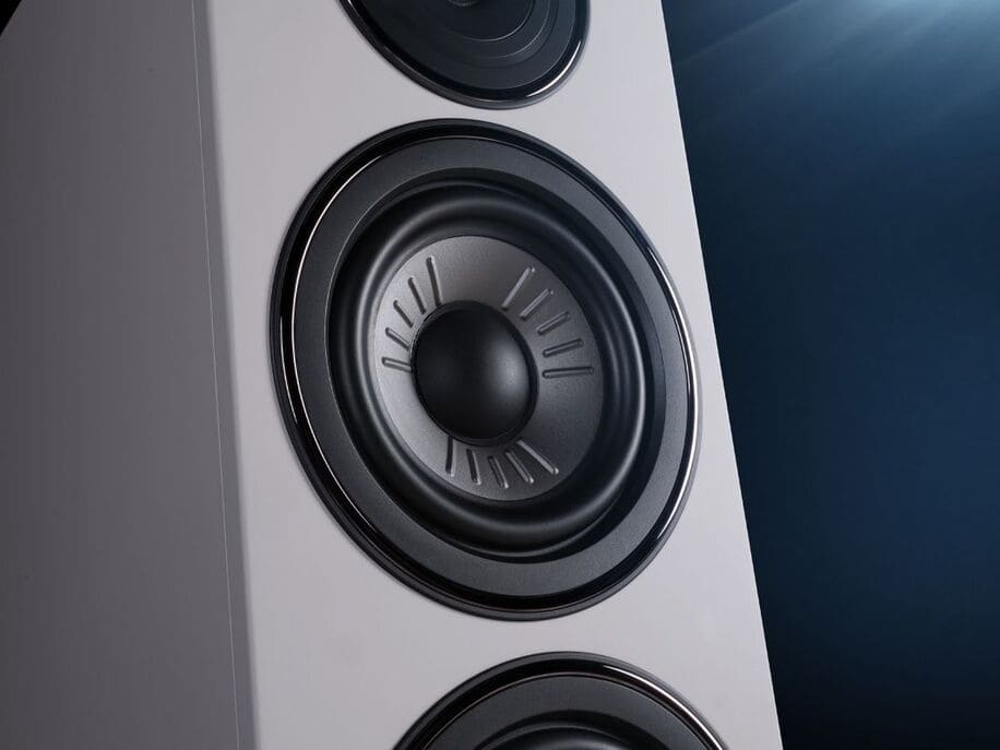 The Klarity diaphragms are driven by a substantial, precision-made magnet system with an aluminium compensation ring to reduce the effects of variations in inductance caused by the movement of the voice coil. The latter is wound on a bobbin made from a composite of glass fibre and epoxy resin – this performs significantly better than commonly used materials at this price point, offering greater power handling, thermal stability and structural strength. The resulting motor system minimises intermodulation and distortion, producing cleaner and more accurate sound.