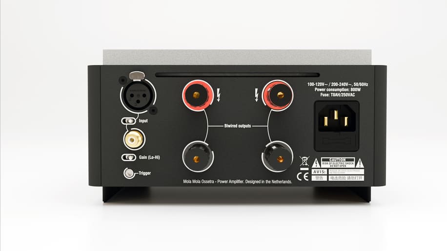 In terms of connectivity, the Ossetra offers both balanced and unbalanced inputs, selectable via a rear-panel switch. Two pairs of Furutech binding posts are biwired directly to the amplifier PCB using Kubala-Sosna cable, with a 3.5mm trigger input provided for system integration.